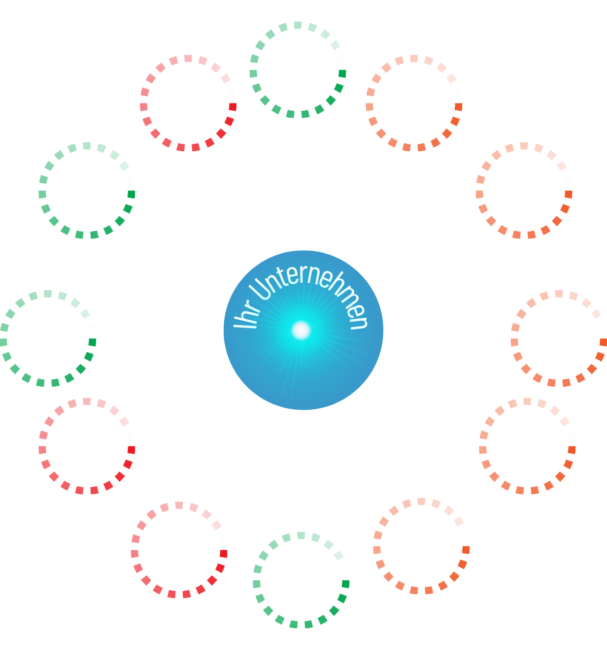 Zum Glück funktionieren Unternehmen, unabhängig von Größe und Komplexität, wie Uhrwerke. Sie können in 12 komplexe Bereiche zerlegt werden. Jeder Bereich funktioniert wie eine Stellschraube und ist mit anderen Bereichen verbunden. Die richtige Einstellung dieser Stellschrauben, beeinflusst dessen Erfolg oder Misserfolg.