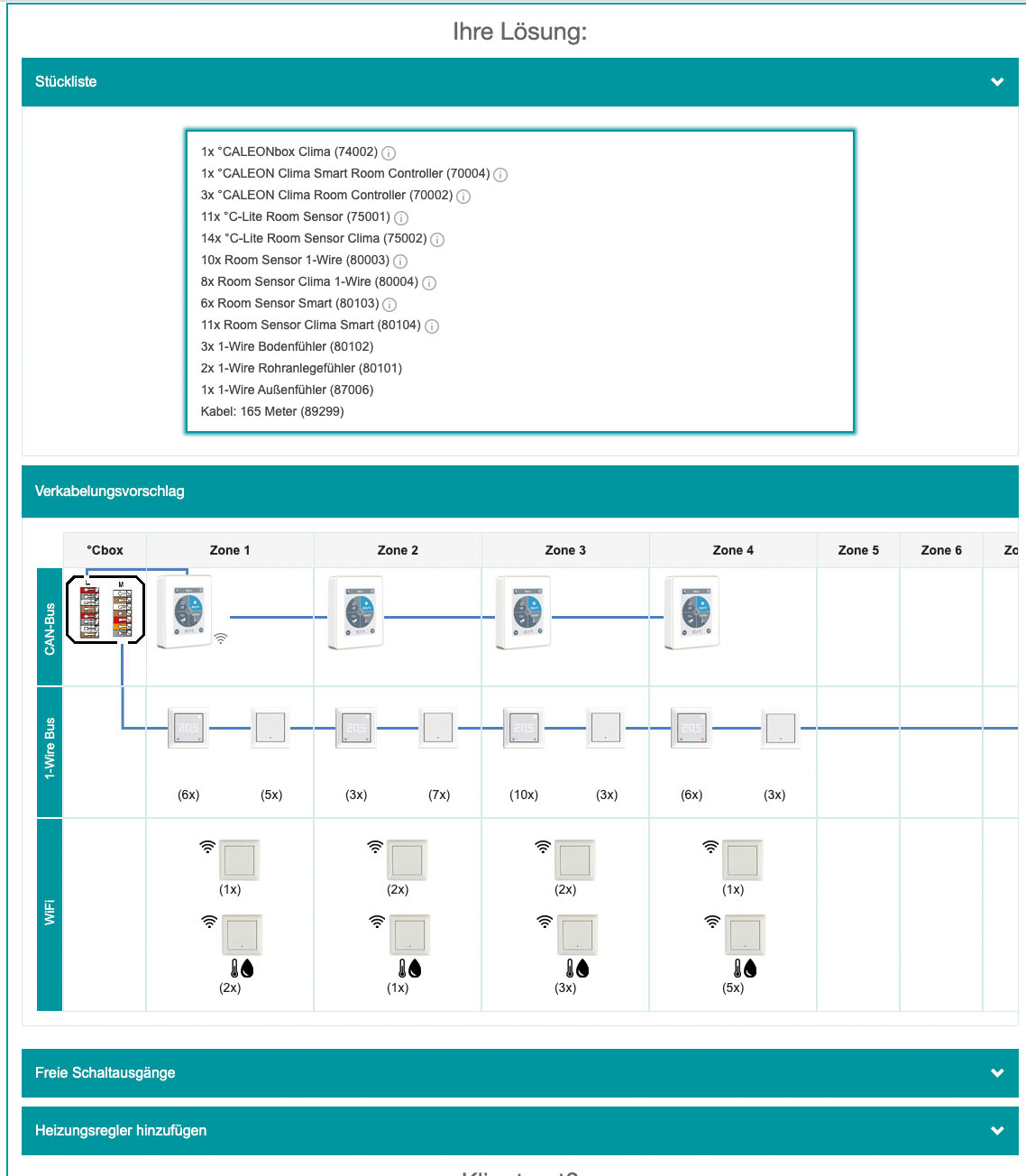 Als Ergebnis der Konfiguration steht eine Einkaufsliste sowie ein dynamisch erzeugter elektronischer Schaltplan, der es dem Unternehmen erlaubt, weitere Produkte aus der eigenen Palette sowie Partnerprodukte in die Planung zu integrieren und durch einen direkt angebundenen Beratungs- und Bestellprozess den eigenen Umsatz erheblich zu vergrößern.